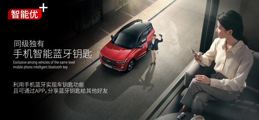 相比哈弗H6更大尺寸的中控屏内置有雄狮智云网联系统,并将4G-WiFi、在线音乐、远程控制车辆以及人脸识别安全控车等功能融入了日常用车场景。用户通过手机蓝牙就可实现车钥匙功能,也可通过相应APP将蓝牙钥匙分享给其他好友,同时配备的AI智能交互语音支持46种方言,为驾乘人员提供了更高效、便捷的智能化体验。