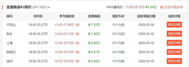 而我为什么说现在买A3是最不可错过的呢?原因也在于目前它这个优惠真的已经是历史最低了。作为一款售卖超过5年的豪华品牌入门级轿车,现有奥迪A3 (配置|询价)已经全部赚回了自己生产线所需要的所有成本,也正因如此,它的价格才能来到13.43万元的最低区间,降价幅度才能高达7.33万。