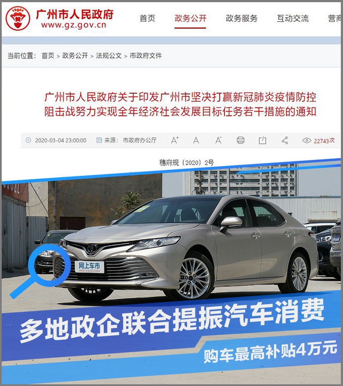政府补贴10000元+广汽丰田补贴10000元