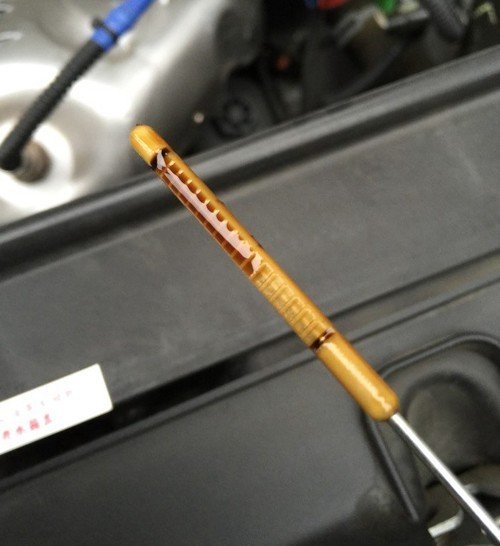 2、机油尺底部附着的机油明显变浑浊,成奶状液体;