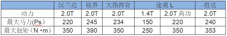 横向对比合资品牌,动力数值上豪越没有优势。同级别的合资品牌大多采用2.0T以上动力,最大马力普遍在220Ps以上,途观L的2.0T低功版本最大马力是186Ps,锐界甚至有322马力的2.7T V6主打性能的ST版本。