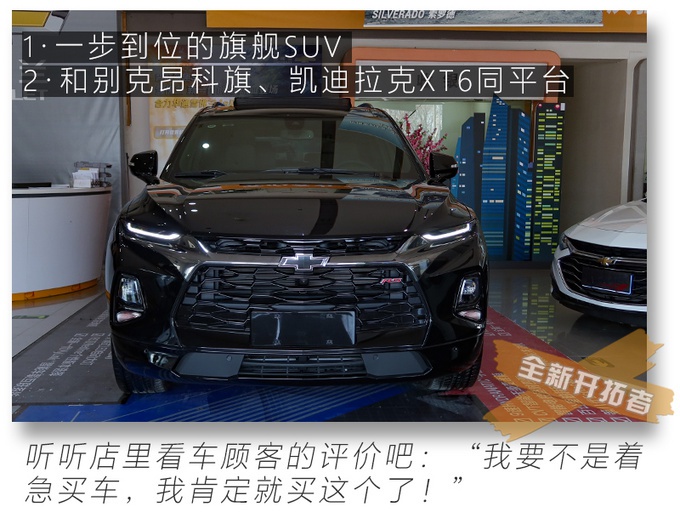 雪佛兰全新开拓者 (配置|询价)可谓是最近关注度比较高的一款中大型SUV新车,也是雪佛兰品牌目前的旗舰SUV车型,搭载2.0T发动机+9AT的动力组合,还提供四驱系统。开拓者预计在3月底正式发布上市售价,目前这款新车已经抵达经销商处,我们抓紧时间去进行了拍摄。就在我们拍车的时候不断有消费者来询问车辆的情况,拍摄完成当天这辆展车就被消费者预订,火爆程度可见一斑!下面我们就一起来看看这辆“别人的”雪佛兰开拓者。