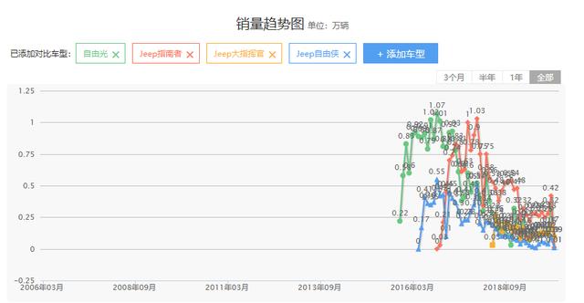2016年年底统计销量时,广汽菲克JEEP的销量同比增长260%,以17.98万辆的成绩收官。2017年,广汽菲克JEEP继续辉煌,销量同比增长57%,累计销量达到22.2万辆。从此,JEEP到了"车生巅峰",当然也是它最后的巅峰,因为还有1年它就要被打回原形了。