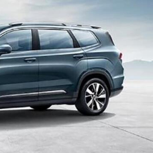 豪越的车身侧面对于腰线的处理比较特别,它并没有着力于打造一条流畅的贯穿式腰线来体现自身的硬朗,而是将平直的腰线轻描淡写,真正体现力量感的地方是它前后凸出的轮眉,以及车门下方的凹凸有致的造型。