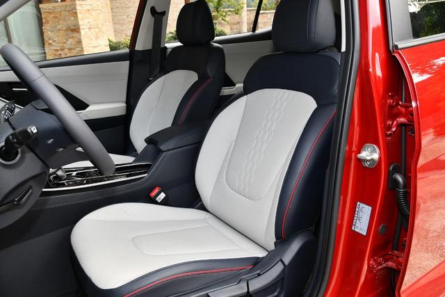 前排座椅造型比较普通,白色缝线和菱形格纹一定程度上提升了高级感,虽然内部填充比较柔软,但包裹性和侧面的支撑性表现一般,并且全系车型也不支持座椅电动调节。