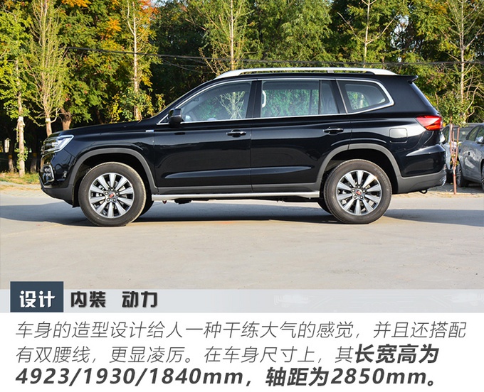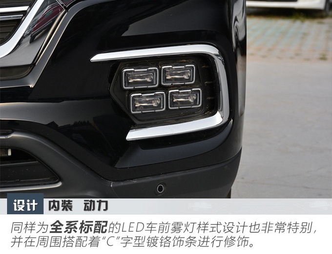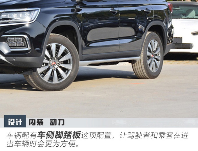 高大健硕的整车造型,首先让车辆具备有很强的气场,同时家族式律动设计语言的运用,更好的提升了车辆的辨识度,而在外观的细节上,诸如:LED远近光源组、LED日间行车灯、车身双腰线、贯穿式尾部镀铬饰条等元素均有出现,增添了车辆的时尚气息。此外,车辆所配备的车侧脚踏板能够做到全系标配,可以方便乘客进出车辆,是一种很贴心实用的表现。