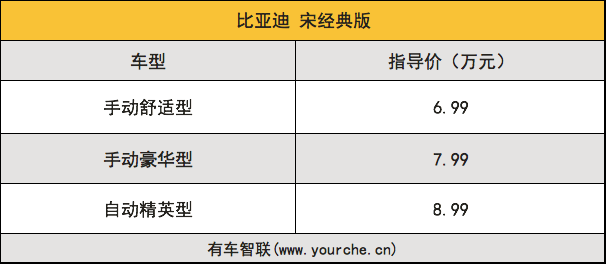 3月18日,比亚迪宋经典版上市,共推出3款车型,售价区间为6.99万-8.99万元。从第一款比亚迪宋上市至今,宋家族打造出多款经典型号都深受消费者喜爱。此次上市的比亚迪宋经典版在延续经典设计的同时,在外观和配置上同样进行了升级。同时,现在购买宋经典版车型还能享受5重礼遇(金融礼、精品礼、无忧礼、带新礼和试驾礼)。