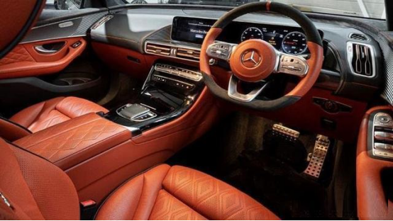 内饰方面,内饰也是在原厂基础上进行了细微调整,菱形图案的座椅和内饰采用大量棕色皮革处理,提升了整体豪华氛围。