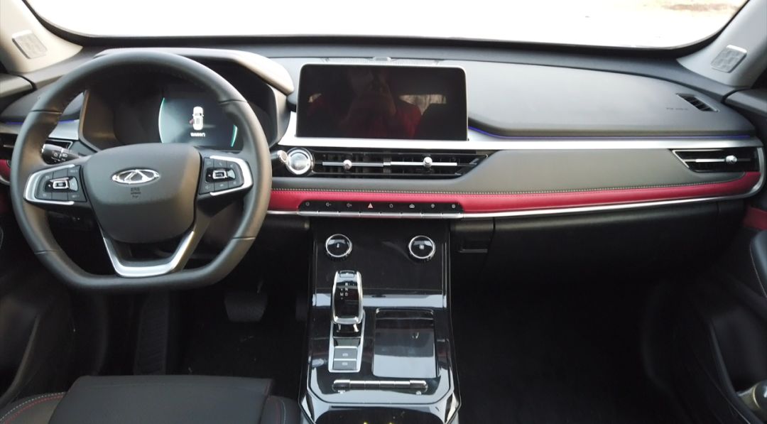 进入车内第一眼,就会被全新瑞虎7内饰所打动,整体风格档次感较强,悬浮式中控屏、电子挡杆造型时尚。再看用料,中控台上方是大面积搪塑材质,下方还有皮质包裹,对于同级车来说也达到了中上等水平。