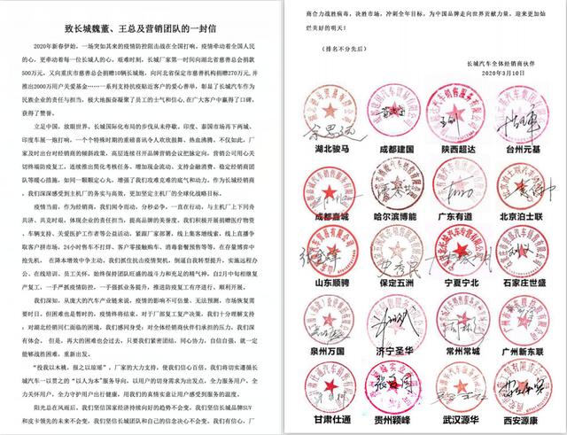 大概是几天以前,一封120余家长城汽车经销商的联名信在汽车行业引发高度关注,内容很丰富,笔者就不一一解读,但文中引用了一句诗:"投我以木桃,保之以琼瑶"。简而言之,在疫情期间,长城汽车不仅给疫区捐钱、捐物,还给予了困难中的经销商大力支持,同时经销商也决定同长城汽车共进退。