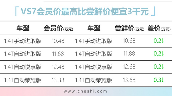 车型名称售价(万元)1.4T手动进取版10.681.4T自动进取版11.881.4T自动悦享版12.681.4T自动荣耀版13.68制表:网上车市 www.cheshi.com