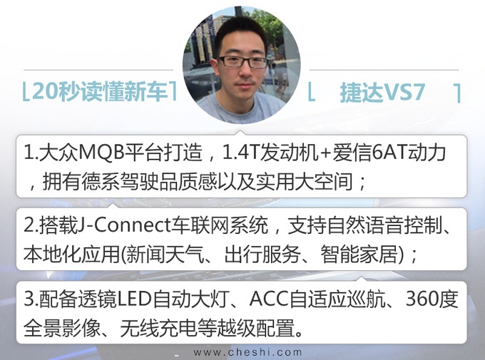 3月20日,一汽-大众捷达VS7 (配置|询价)正式上市,共推出4款配置车型,官方指导价为10.68-13.68万元,5月31日前购车并注册为捷达会员,可享受会员指导价,为10.48-13.38万元,其中顶配车型价格相比上月底公布的“尝鲜价”还要便宜3,000元。VS7定位中型SUV,也延续了捷达品牌德系品质、大空间以及高性价比等优势,将竞争现代ix35 (配置|询价)、吉利博越 (配置|询价)PRO等同价位产品。