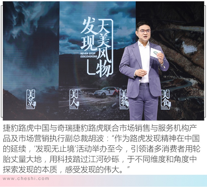 2012年,路虎品牌推出了创新体验营销活动“发现无止境”,目前已经走过了七季。捷豹路虎中国与奇瑞捷豹路虎联合市场销售与服务机构产品及市场营销执行副总裁胡波表示:“每一个伟大的发现都源于一个全新的发现。自诞生之日起,全地形就与路虎相伴而生,它不仅是路虎品牌最为核心的型格,更铸成了路虎心至无疆的品牌精髓。作为路虎发现精神在中国的延续,‘发现无止境’活动举办至今,引领诸多消费者用轮胎丈量大地,用科技踏过江河砂砾,于不同维度和角度中探索发现的本质,感受发现的伟大。”