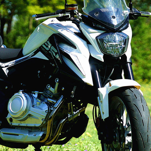 348cc的车型配前双浮动盘而且标配ABS,这配置还是不错的,但当我看到它的双活塞卡钳时,又倍感失落,在320mm制动盘的衬托下,显得这个卡钳更小了,而且其作用面也相对较窄,前制动手感比较绵柔,反而是后制动给我的感觉相对较好。