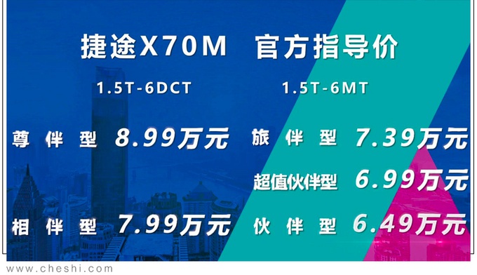 车型名称售价(万元)伙伴型 1.5T-6MT6.49超值伙伴型 1.5T-6MT6.99旅伴型 1.5T-6MT7.39相伴型 1.5T-6DCT7.99尊伴型 1.5T-6DCT8.99制表:网上车市 www.cheshi.com