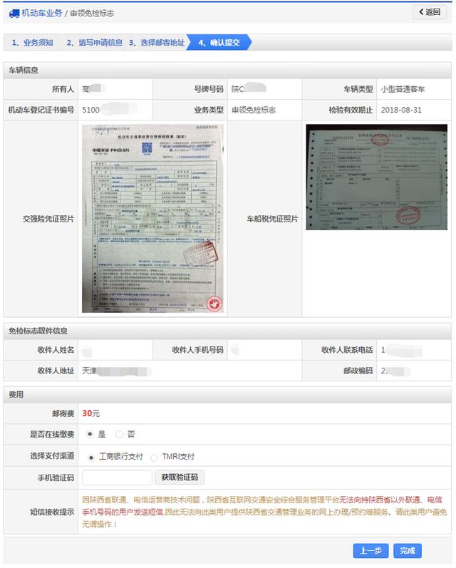 对于免检车辆,全国都开通了线上检验标志申领服务,可以在手机App"交管12123"中操作申请,也可以登录当地的交管部门网站进行申领。申请时,用户需提供交强险凭证、车船税凭证照片,并填写邮递地址及缴纳邮费。对于北京这种在推进电子检验标志的地区,可以不用邮递及缴纳邮费。