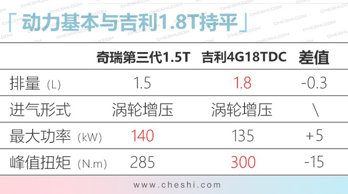奇瑞在自主研发领域的成果一直有目共睹,大规模普及的第三代1.6TGDI发动机已经得到了市场的认可。日前网上车市获得了奇瑞第三代1.5TGDI的相关信息。这款发动机有两个版本,高功率版的最大功率达140kW,相比目前使用的1.5T发动机,动力大幅提升,整体动力性能与吉利1.8T基本持平。这样的数据在目前主流的1.5T发动机中,说“同级最强”不为过吧?
