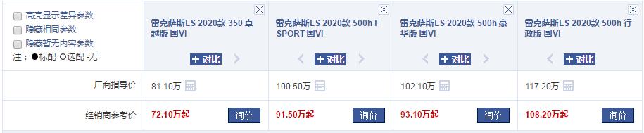 作为雷克萨斯的旗舰豪华轿车,LS的厂商指导价为81.10-117.20万元。不同于涨价且加价的走量车型ES,LS有提供一定的优惠,最低配的350卓越版优惠后仅为72.1万元起,比同级别82.8万元起的宝马730Li和84.28万起的奔驰S320L还便宜差不多10万元,说起来也是很实惠的。