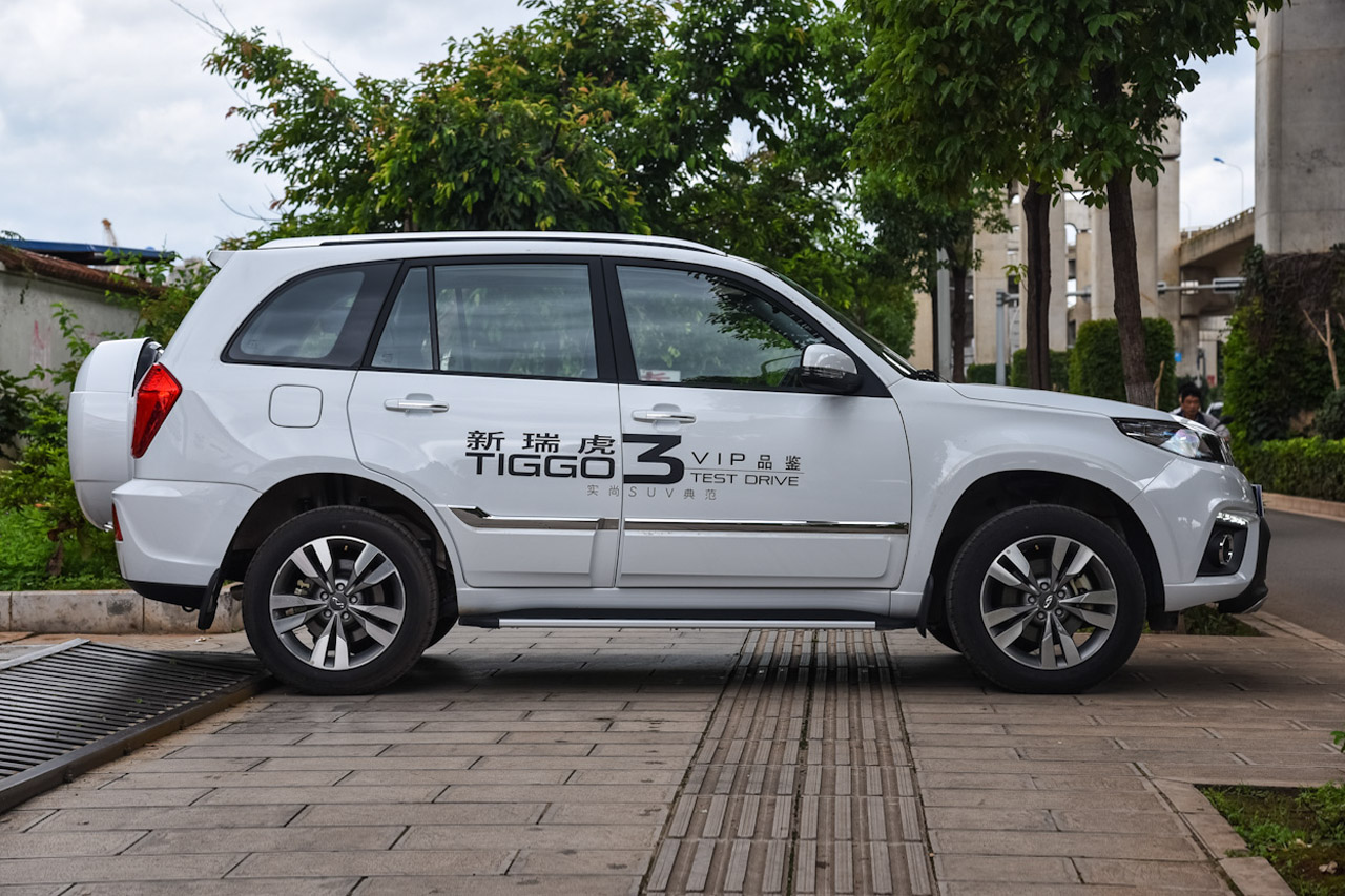 外观是我喜欢小三的一个原因,很蛮很野的感觉,虽然虎3是小型suv。 车身厚度可以,白色车很亮。