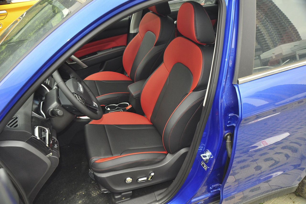 座椅舒适性:前排座椅软硬适中,包裹性好,加上有腰部支撑,比较舒适。