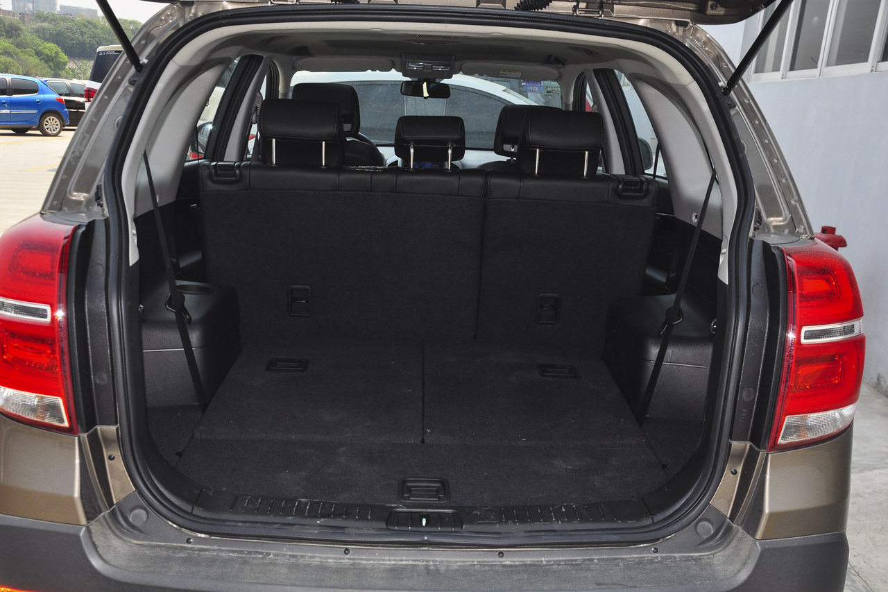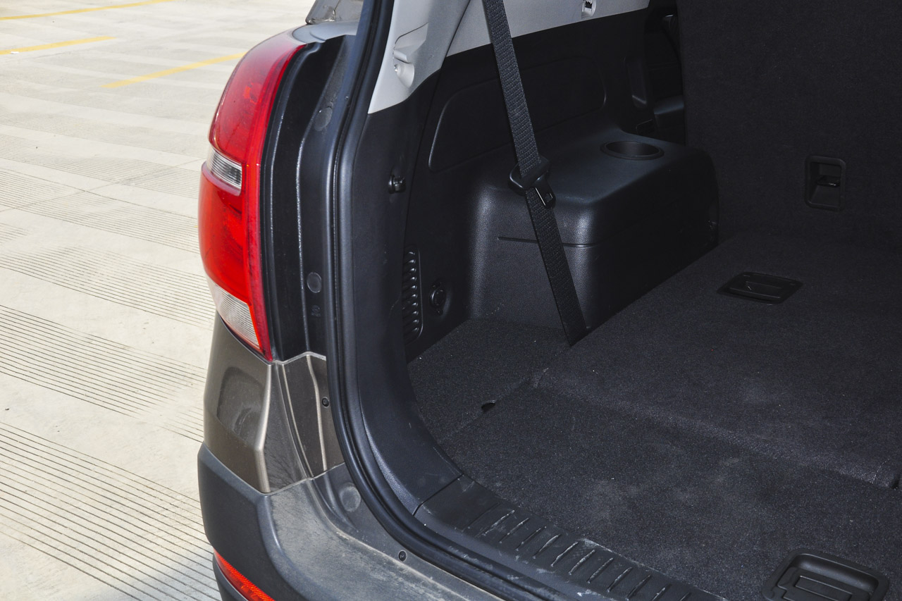 空间挺满意的,特别头部空间大,横向纵向空间在这一级别里算中规中矩。但科帕奇的空间比较灵活,尤其是副驾座可以放倒是特色,这样可以放一些比较长的东西。还有第二排底板纯平也是一大优点。前排储物空间比较多,第二排车门板没有设计放水瓶的槽是缺点。第三排使用后后备箱基本放不了什么东西,这就有点尴尬了,满载时行李怎么放?当然车顶行李架算是一种解决办法但还是不方便。 另外这个车的备胎架放不下正常规格的轮胎,换下来的轮胎只能放后备箱,这在后备箱行李多的情况下怎么操作?应该算是个bug吧。虽然可以自行改装备胎架来解决,但是原厂就设计好不是更好。