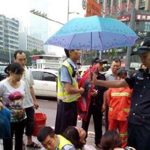 陈德灿说,当时下着毛毛雨,新牌坊派出所一名协勤找来一把雨伞,为受伤女子遮雨,直到10分钟后救护车赶到。