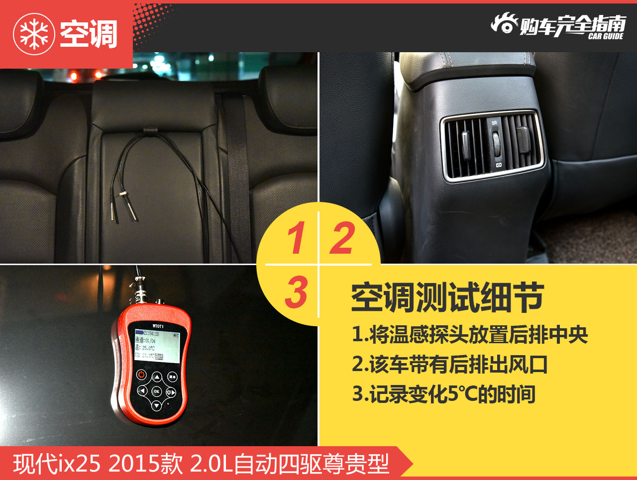 ix25的空调表现不错,由30℃降到25℃只用了1分42秒的时间,获得了4分的好成绩,可见其制冷效果非常出色。