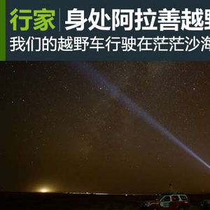 在阿拉善英雄会开幕的第二天夜晚,我们的越野车行驶在茫茫沙海中,驻足仰望,浩瀚星空。如果说旅行是一场美丽的失踪,那不如就此迷失在腾格里不眠的夜空里,腾格里的美,寂静之夜、群星璀璨。