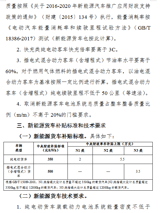 按照技术上先进、质量上可靠、安全上有保障的原则,适当提高技术指标门槛,保持技术指标上限基本不变,重点支持技术水平高的优质产品,同时鼓励企业注重安全性、一致性。主要是:稳步提高新能源汽车动力电池系统能量密度门槛要求,适度提高新能源汽车整车能耗要求,提高纯电动乘用车续驶里程门槛要求。具体见附件。