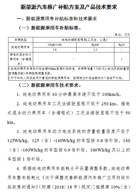 附件:新能源汽车推广补贴方案及产品技术要求