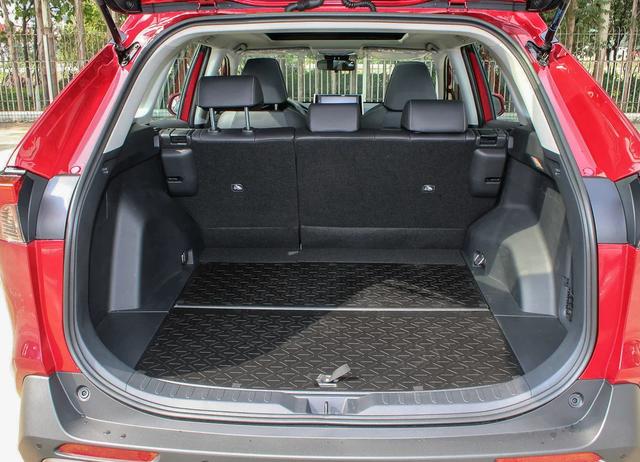 RAV4的长宽高分别为4600*1855*1680mm,轴距为2690mm,从账面数据不难看出,RAV4有着不错的车身尺寸,自然在空间方面也不会让人失望。除却乘坐空间的宽敞及车内储物格的日常够用外,后备箱还有1142L的最大容积。