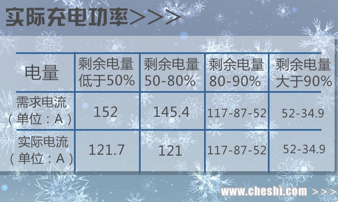 通过充电桩的显示器能够看到 小鹏G3此时的需求电流为152.4A,但是实际充电电流仅为121.6A,似乎国家电网充电桩有些“满足不了”小鹏G3的需求,结合上我们的冬令营评价体系(剩余电量在50%以下时,充电电流10分钟内达到120A的得10分,超出10分钟不得分),小鹏G3此项得分为10分。