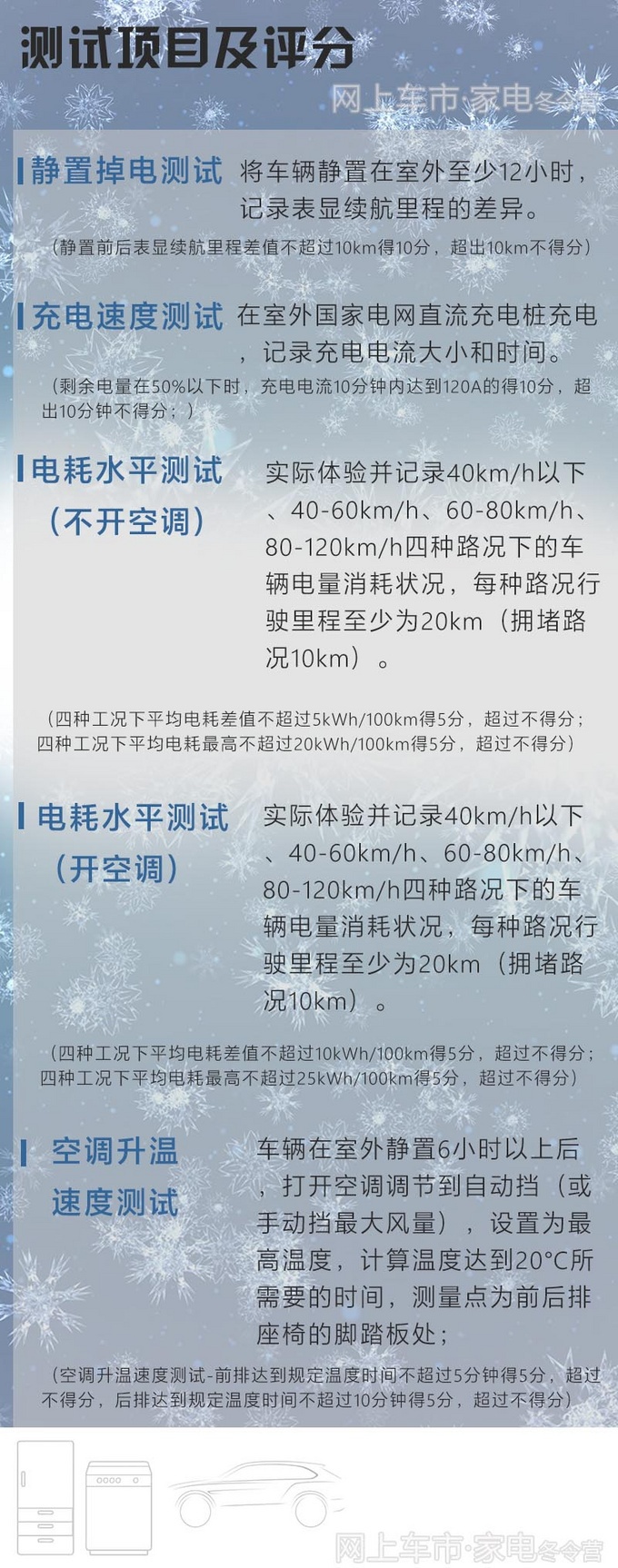 为了保证测试的准确以及权威性,我先来介绍一下车市 ·家电冬令营的测试项目以及评分标准,并且在测试中严格执行测试标准,以确保实验数据的准确性。