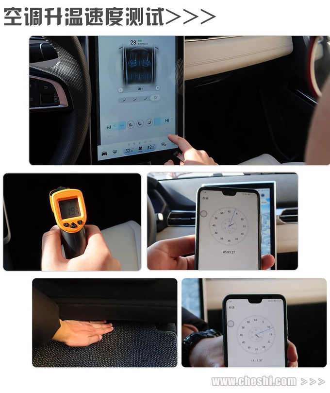 我们首先测定了小鹏G3前后排副驾脚踏出温度,并且将空调温度设置到最高温度、自动模式,记录温度升高至20℃时所需时间。