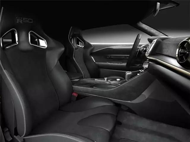 相比于早期的概念版本,GT-R50量产版的内饰更加务实,能够看到现款GT-R的影子。新车车内采用了两种碳纤维面板,分布在中控、仪表和门内饰板等部位,并搭配有大量的Alcantara仿翻毛皮材料,大大提升了车内质感。每位客户还能结合自身审美需求自由定制内外配色和材料,使得每款车型更具个性。