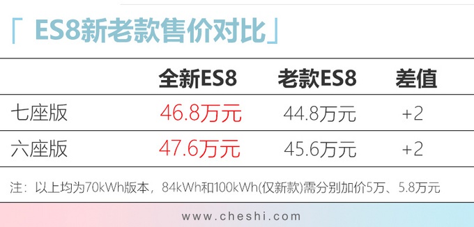 在产品层面,蔚来全新ES8正式发布,新车分为普通版和签名版两种不同版本,补贴后售价区间为46.8-62.4万元。新ES8售价相比老款贵了2万元,但动力上采用的是最大功率为400kW的电机,相比老款降低了80kW,百公里加速时间随之从4.4秒增加到了4.9秒。需要指出的是,全新ES8动力减弱了,但续航里程增加了60km。