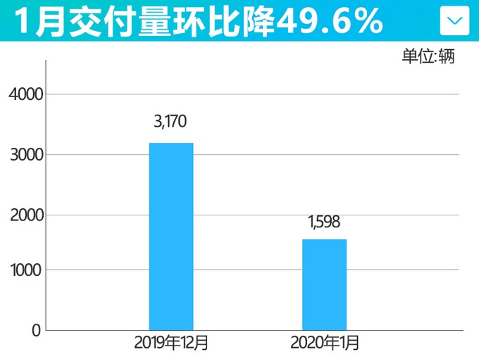 2月10日是各企业复工第一天,蔚来在这一天正式公布2020年1月交付数据,今年1月份,蔚来整体交付量1,598台,环比下滑49.6%,同比下滑11.5%。其中,ES6 (配置|询价)交付1,493台,环比下跌41.2%;ES8 (配置|询价)交付量仅为105台,环比下滑83.4%,同比大幅降低94.2%。自2018年6月开始交付以来,蔚来品牌累计交付33,511台。