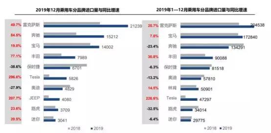 而保时捷、奥迪、路虎、MINI等其他品牌的排名相对比较稳定,但受市场下行的影响,其销量也呈现出不同的下降幅度。值得一提的是,2019年特斯拉的进口车销量有较大幅度的提升,同比增长226.6%。虽然在总数上距离丰田、宝马、雷克萨斯等品牌还有一定距离,但其增长幅度值得所有厂商的注意。