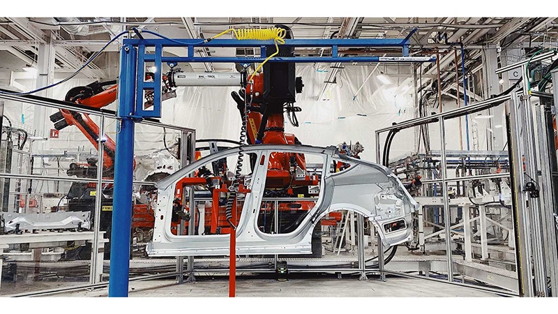 随着交付时间的临近,量产工作正在进行。日前,我们从外媒处获取到了一组疑似特斯拉Model Y的生产制造过程,并还有其铸造车身的图片。