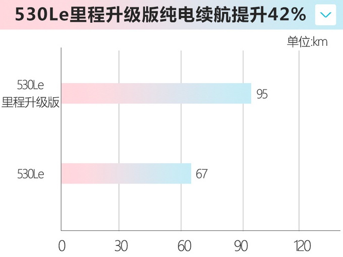 宝马530Le里程升级版车身尺寸与老款车型保持一致,动力上新车沿用2.0T插电混动系统,综合最大功率为185kW,综合峰值扭矩为420N.m,其中发动机最大功率为135kW。电池与续航方面,530Le里程升级版电池容量由老款的13kWh提升至17.7kWh,纯电续航里程也相应的由67km提升至95km,每百公里综合油耗低至1.5L(老款为1.6L)。