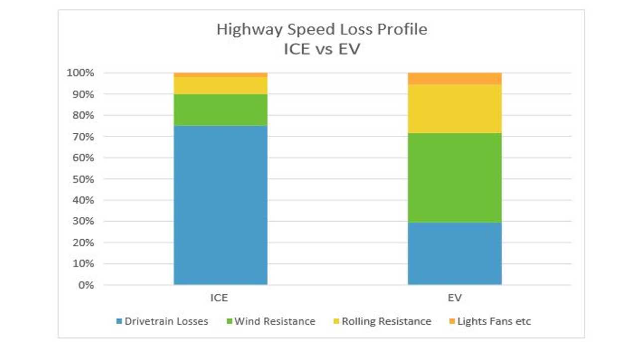 此外,对于燃油车来讲,当车辆的空气动力学效率提高10%时,它在公路上能提升的效率则是非常少的,对于总损失中15%的份额,改善10%的空气动力学特性仅会使车辆效率提升1.5%。这就是为什么你看不到有多少燃油车会配备空气轮圈。
