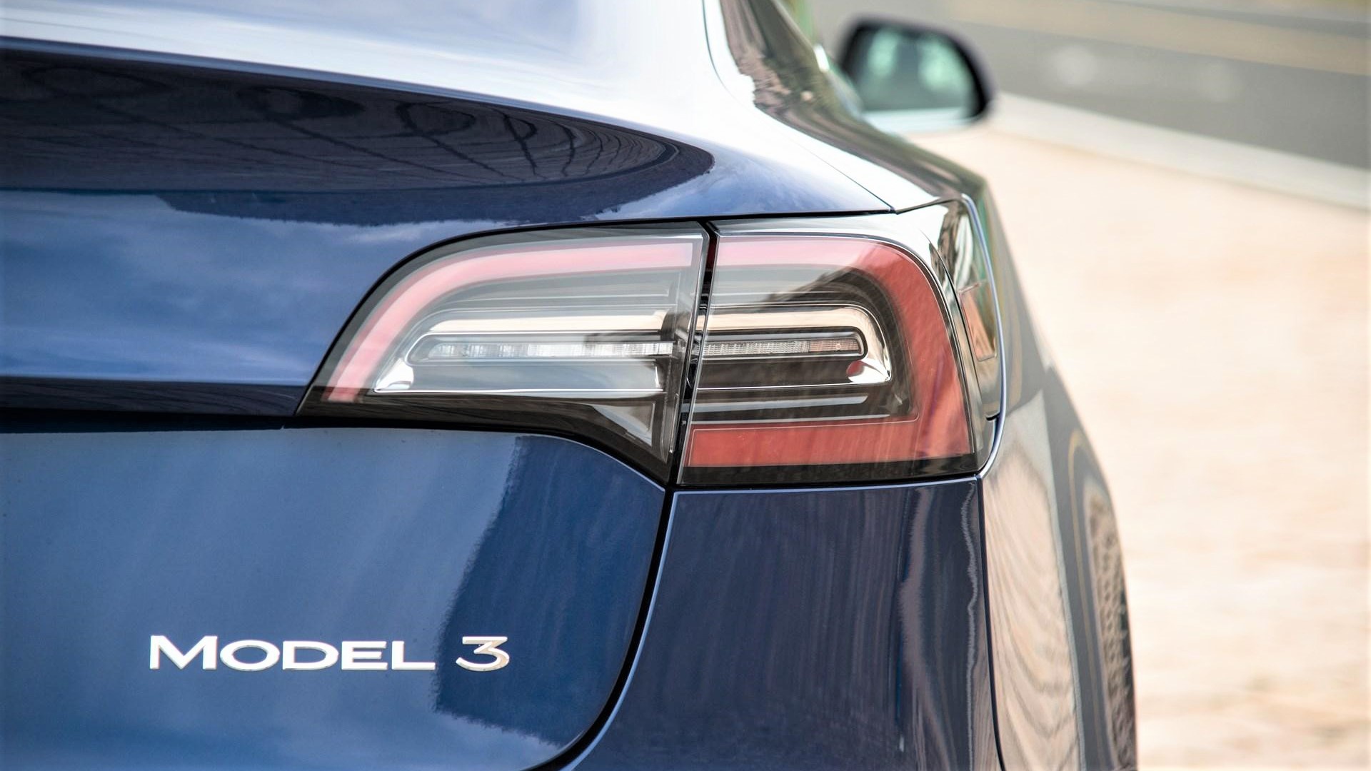 车尾也没有增加额外的标识,左侧为特斯拉的汉字,右侧则是Model 3的英文拼写。