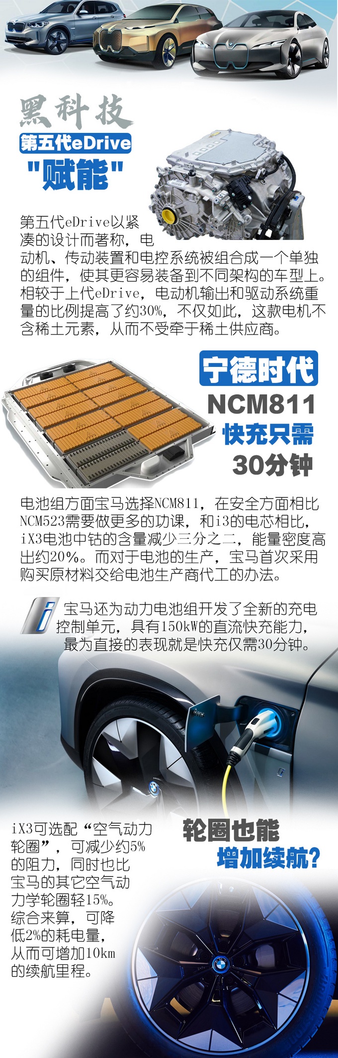 单凭其名可以看出,iX3与家族“i系列”和X3有着密不可分的关系,没错,新车可以理解为X3的纯电动版车型。但需要注意的是,它并没有走X3的老路,而是直接由国内生产,再转外销出口到全球各地,也就是说iX3是宝马品牌在国内生产的首款纯电动车型。可见,宝马对于中国市场的重视。与此同时,新车将于今年第三季度进行发布。