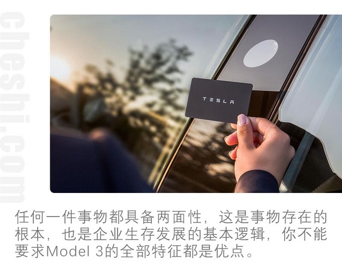 明确了这一点你就能够理解厂家在营销和产品设计上的一些取舍了,手机上市半年降价三分之一很正常对不对?平板电脑偶尔死机可以理解对不对?同样的,Model 3也提供这些新奇体验,所以我们认为,那些质疑特斯拉做工质量、软件可靠性和设计奇葩程度的车主们,你们只是没有摆正心态,用长时间形成的对汽车的印象套用在了特斯拉Madel 3上,这对它是不公平的。
