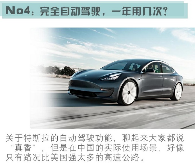 有朋友可能会说“你**是故意的,电动车保值率普遍都低。”但其实特斯拉的二手车保值率在其他品牌电动车之中已经是高不可及的水平,说这个问题只是想给那些把Model 3与同价位豪华品牌座驾列入一张选车名单中的朋友一个参考。诚然还会有朋友说了“这么比不科学,不是一类型的车,特斯拉的自动驾驶功能奔驰宝马都比不了。”别急,我们马上就说到了。