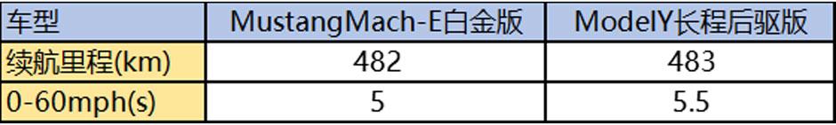 说到电动车,续航是尤为重要的,而且这两款车还主打运动,加速时间也十分重要,下面就来看看福特Mustang Mach-E和特斯拉Model Y的差异。