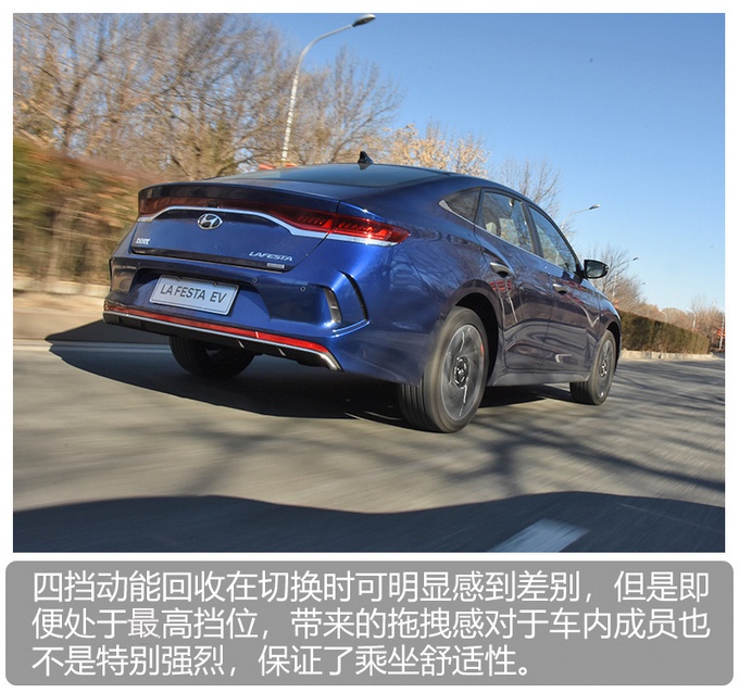 动能回收系统有四个挡位可选,0挡状态下动能回收将处于关闭状态,而其它挡位,动能回收效率和松开加速踏板后车辆被拖拽减速的感觉,都将随着挡位的增加而提升。通过实际体验来看,即便放置在3挡最高挡位,完全松开油门踏板后,产生的拖拽感也并不突兀,制动回馈相对较为线性,保证了乘员的舒适体验。