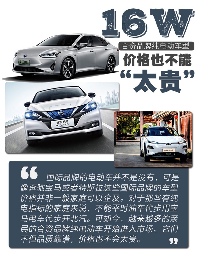 为什么推荐它:先期上市的轩逸纯电给了合资品牌纯电动车型开辟了一个新的方向,你不需要互联网概念、也不需要博眼球的出位表现,也不需要超长的等速续航能力。那些追求品质的目标客户群看重的是车辆本身的产品力表现,安全可靠踏实、设计审美在线、价格还不贵。看似这些产品力很容易达成,但实际上需要雄厚的技术实力积累,而轩逸纯电恰恰好全部满足。