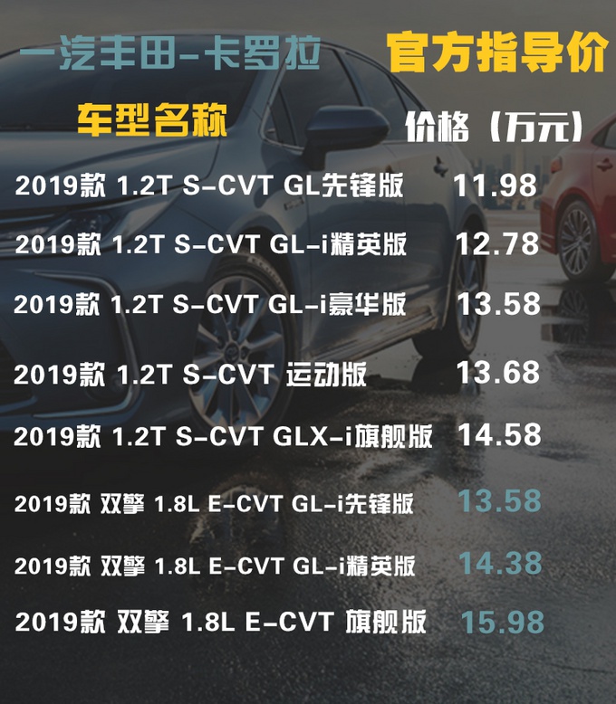 全新卡罗拉已经上市已经有一段时间了,市面上也不少相关的导购推荐,相信大家也不陌生,本期主要是结合网友的需求—主要家用也可能用于网约车使用,在传统燃油动力和混动车型当中分别选择一款最合适的车型,笔者给出一个综合建议。首先说结论,1.2T豪华版和1.8L双擎精英版最推荐,为啥?往下看。