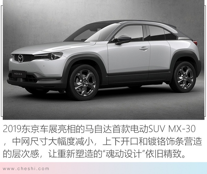 在2019东京车展上,马自达首发了首款纯电动车型:马自达MX-30,新车外观延续马自达家族式设计,而并非传统的“油改电”,搭配对开门的设计让整车更具豪华感和时尚感,由于续航里程等因素,未来并不会引入中国市场。
